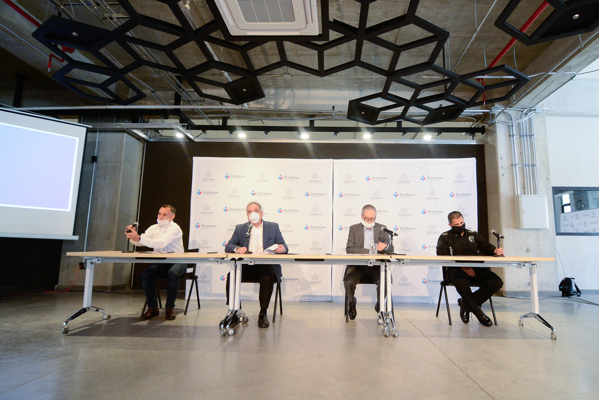 La rueda de prensa sobre los filtros carreteros fue presidida por los funcionarios estatales Macedonio Taméz Guajardo, Jefe del Gabinete de Seguridad de Jalisco, Alberto Esquer titular de la Secretaría de Agricultura y Desarrollo Rural, Juan Bosco Agustin Pacheco Medrano, Secretario de Seguridad en Jalisco, y Enrique Ibarra Pedroza, Secretario General de Gobierno.