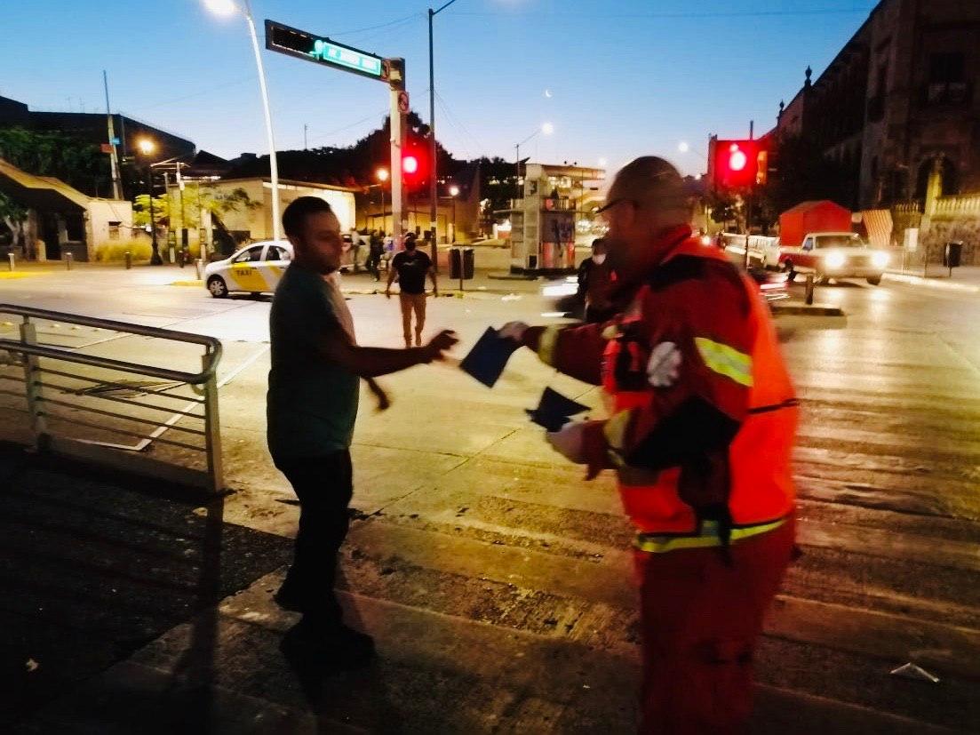 En Guadalajara, los policías, inspectores, y elementos de la Unidad de Bomberos, se dieron a la tarea de repartir cubrebocas en puntos dónde se generan aglomeraciones de personas, como las entradas al servicio del Tren Ligero, en los tianguis, mercados, bancos y restaurantes.