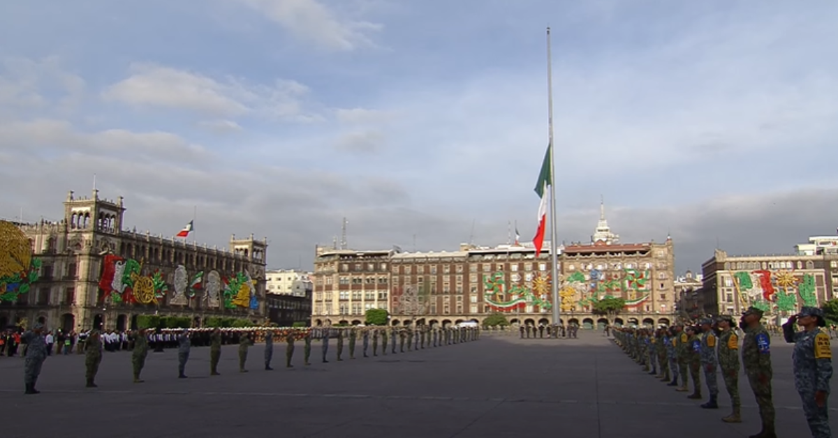 En la plancha del Zócalo se realizaron honores a la bandera, el canto de la bandera y un minuto de silencio, con la presencia de contingentes de las Fuerzas Armadas y de Protección Civil.