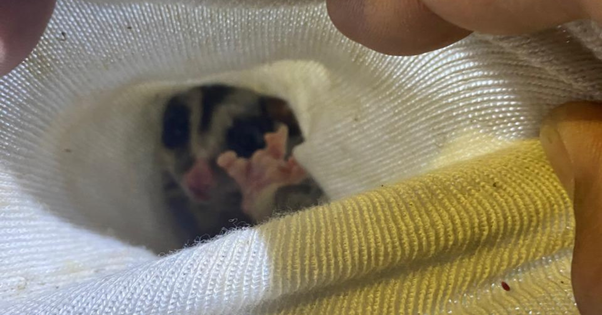 Al arribar al lugar, los oficiales localizaron una caja de cartón que contenía un calcetín, en cuyo interior se encontraba una cría de zarigüeya, la cual, por sus características, aparentaba tener muy corta edad, por lo que se procedió al resguardo del ejemplar.