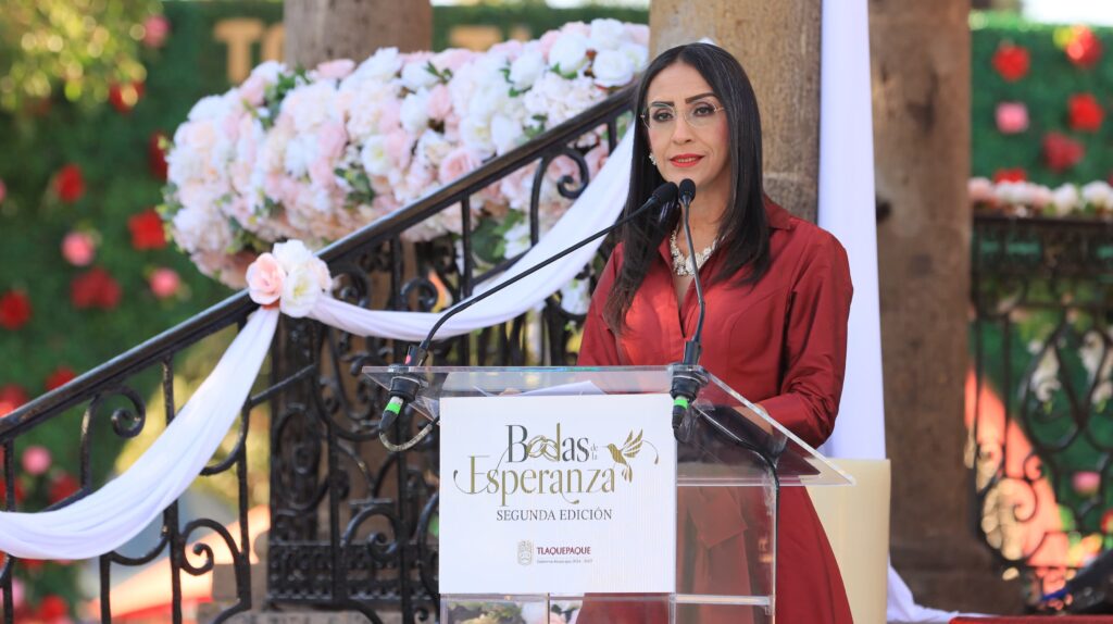 Celebramos la alegría, pero también la valentía de decidir compartir la vida. En Tlaquepaque asumimos con honor la responsabilidad de dar certeza jurídica a un acto profundamente humano. Por eso esta ceremonia lleva un nombre que lo dice todo: Bodas de la Esperanza. Porque cada pareja que hoy se une deposita en este momento sus sueños, sus anhelos y la promesa de construir un hogar donde habiten el respeto, la solidaridad y la ayuda mutua. Al amparo de la ley, damos forma legal a lo que ya existe en el corazón, subrayó Laura Imelda.
